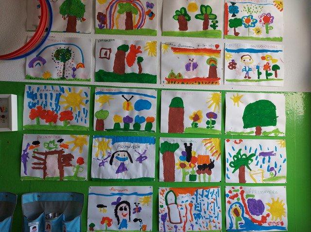 Os mais pequenos do Jardim de Infância desenharam e pintaram pássaros chegados às suas árvores preferidas e jardins com flores.