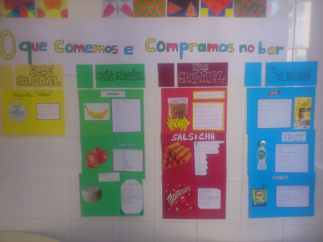 – Ação “bar saudável” com identificação de alimentos comprados e consumidos no bar da escola sede e respetivas composições nutricionais, pelos alunos do 2.º ano do Curso Profissional de Saúde;
