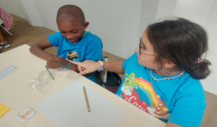 Os padrinhos do 4.º B fizeram questão de preparar mimos especiais para os seus afilhados, oferecendo um postal com mensagens de boas-vindas e uma pulseira personalizada, símbolos de uma amizade que agora se inicia.